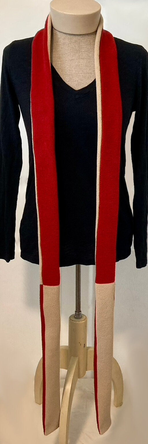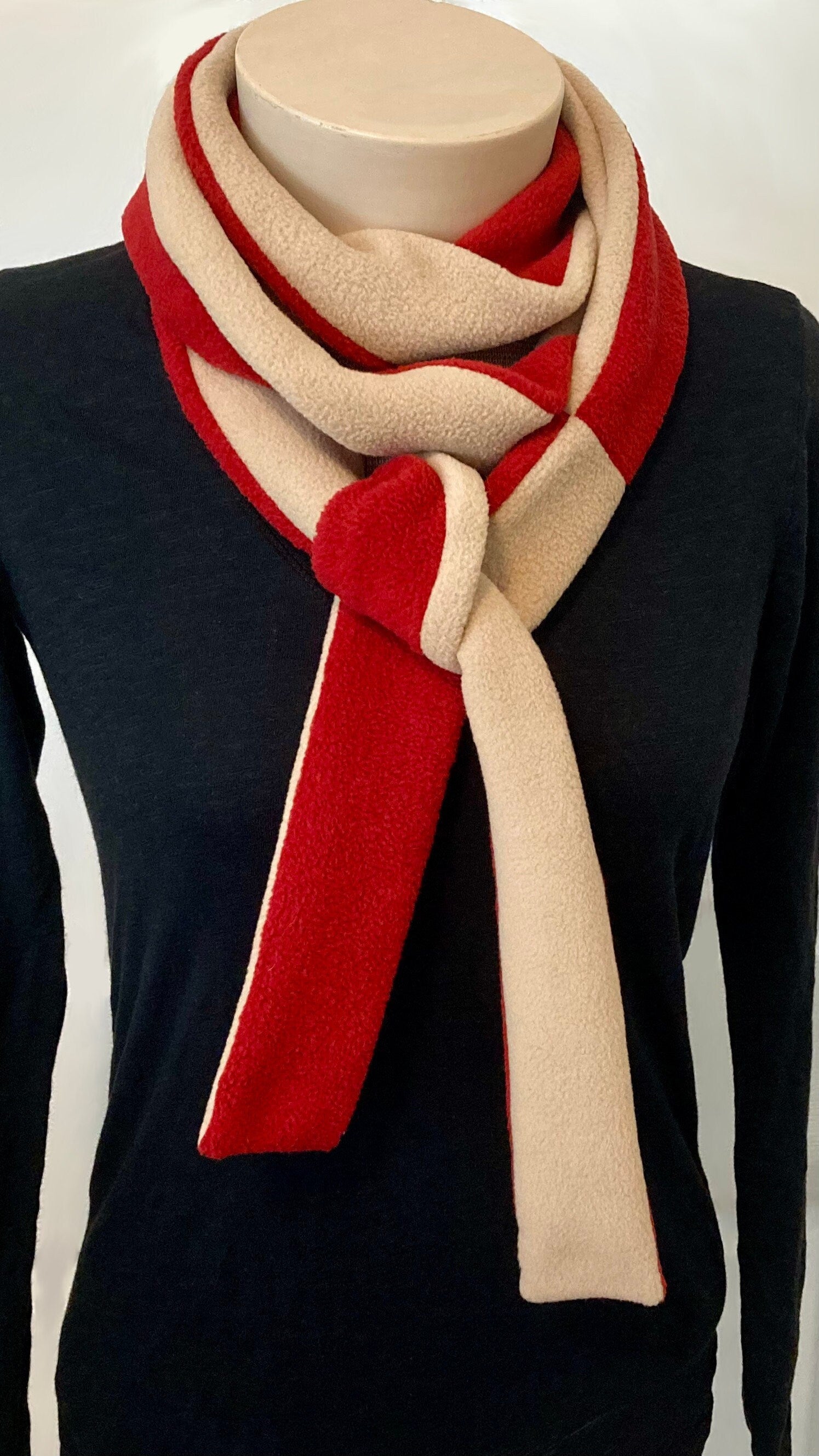 Skinny Fleece Scarf with Beige and Red Reversible Design