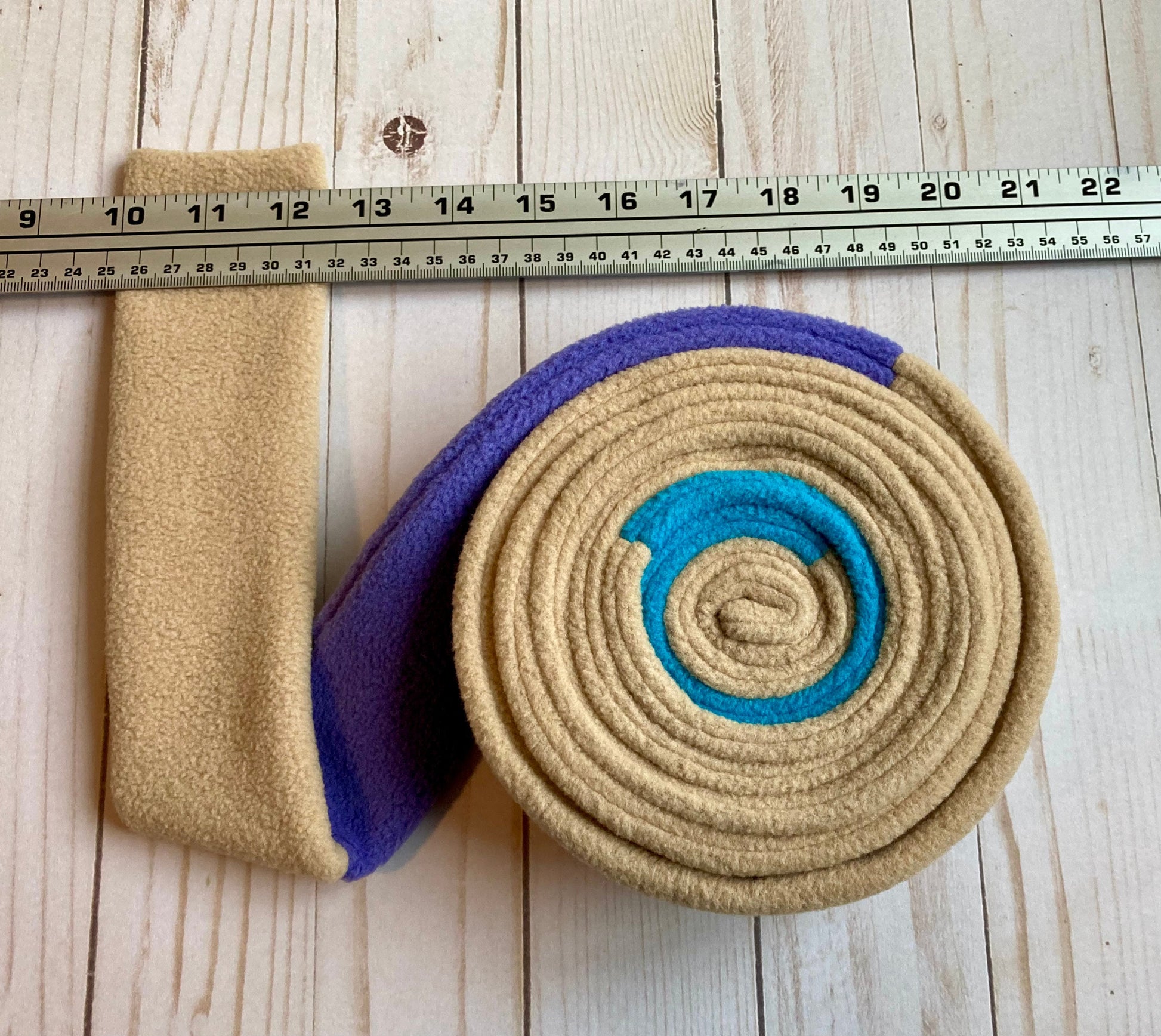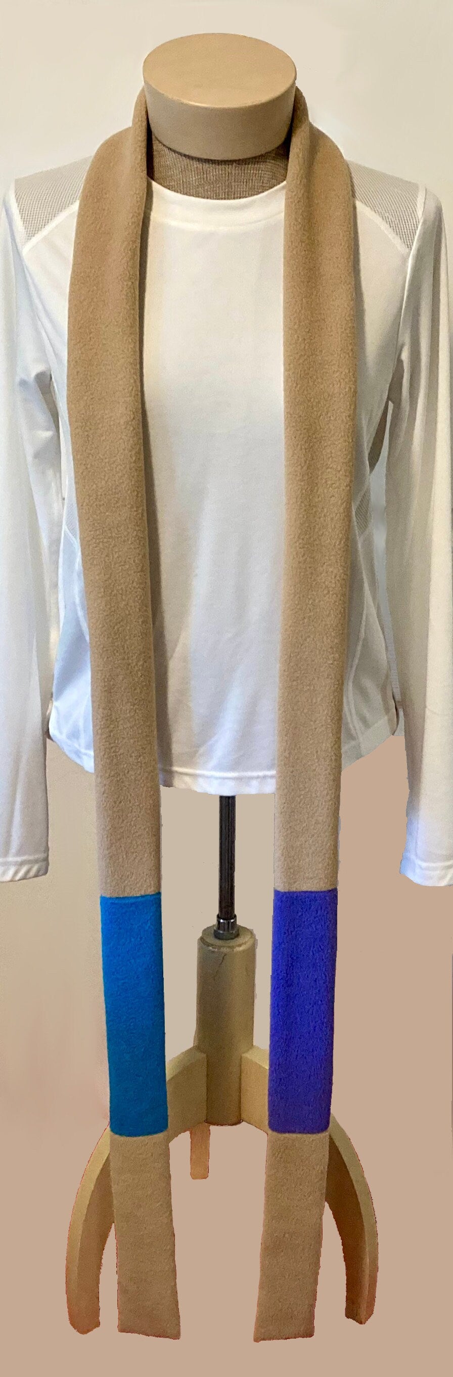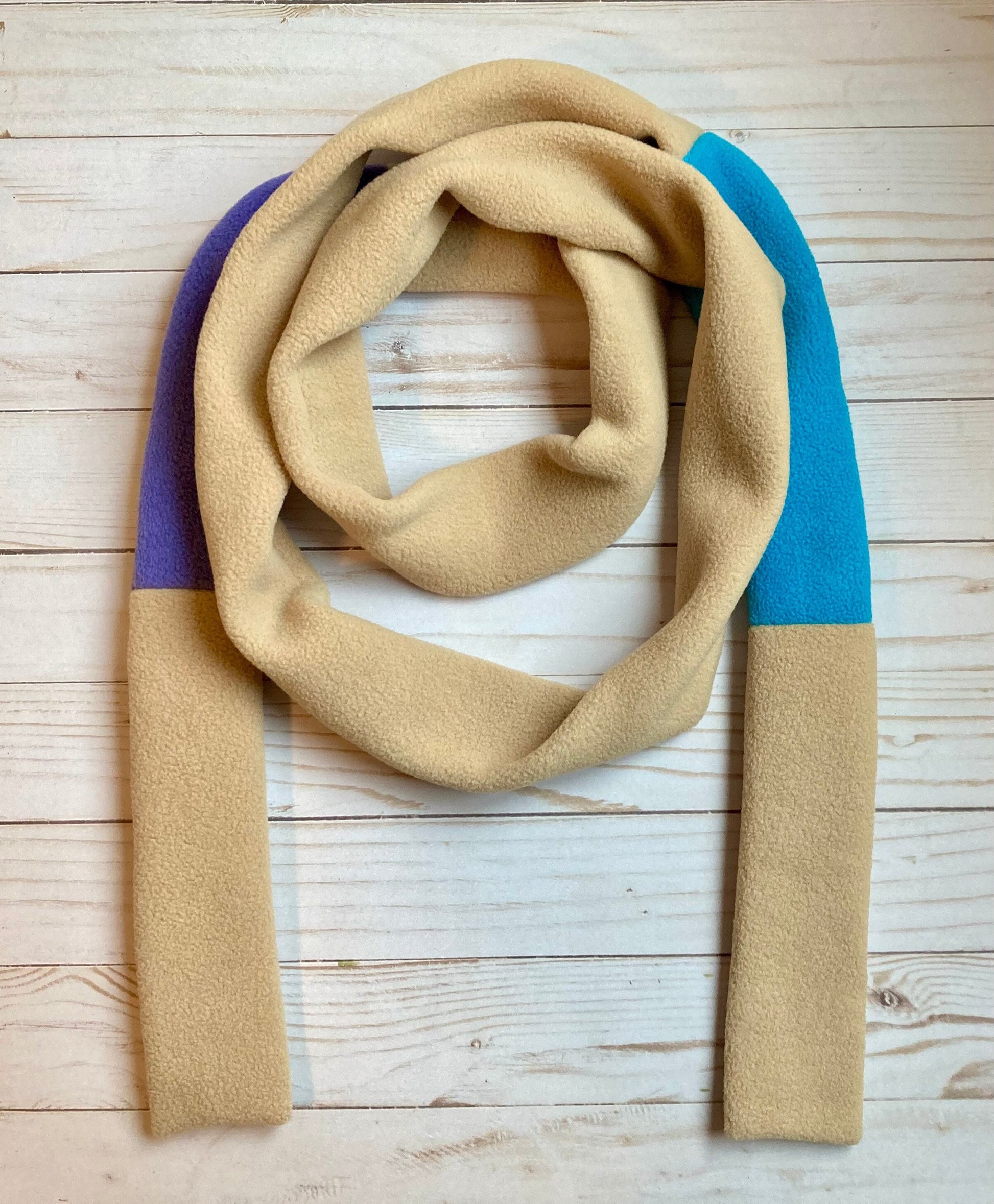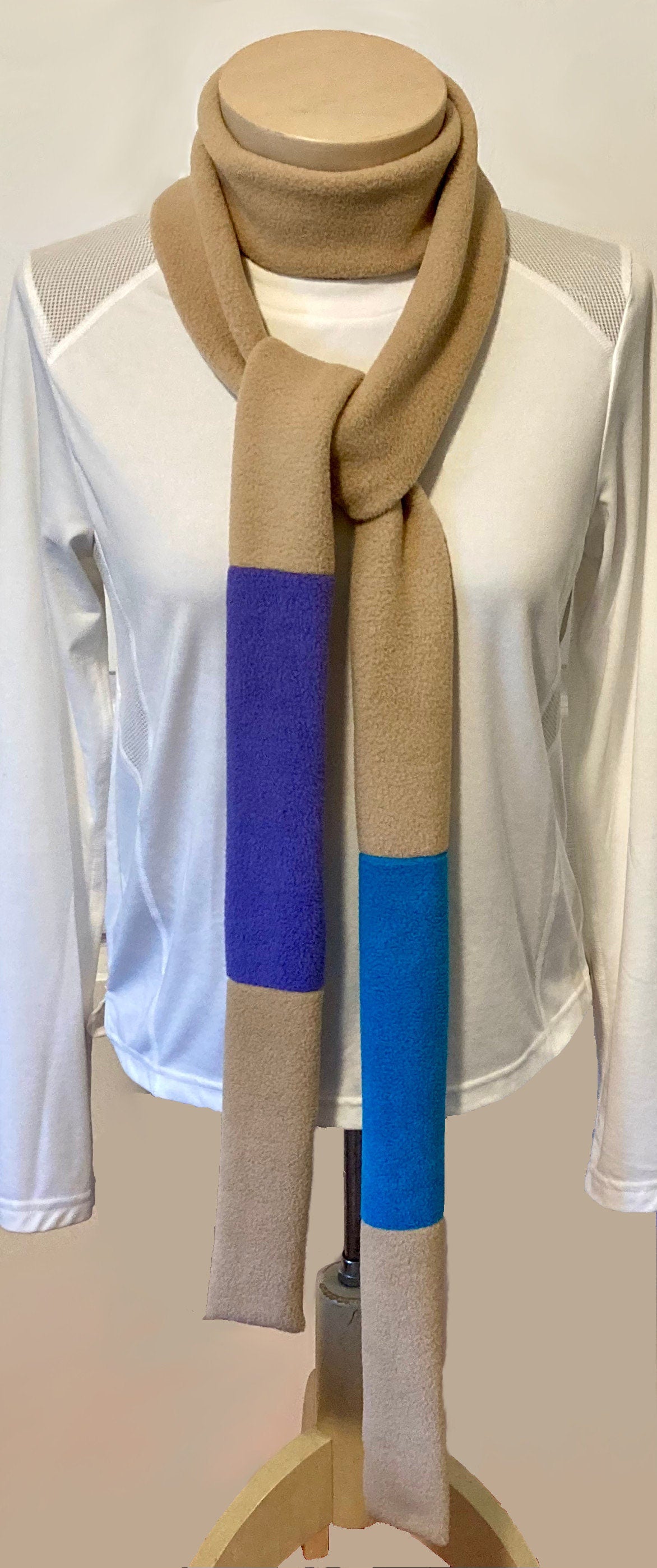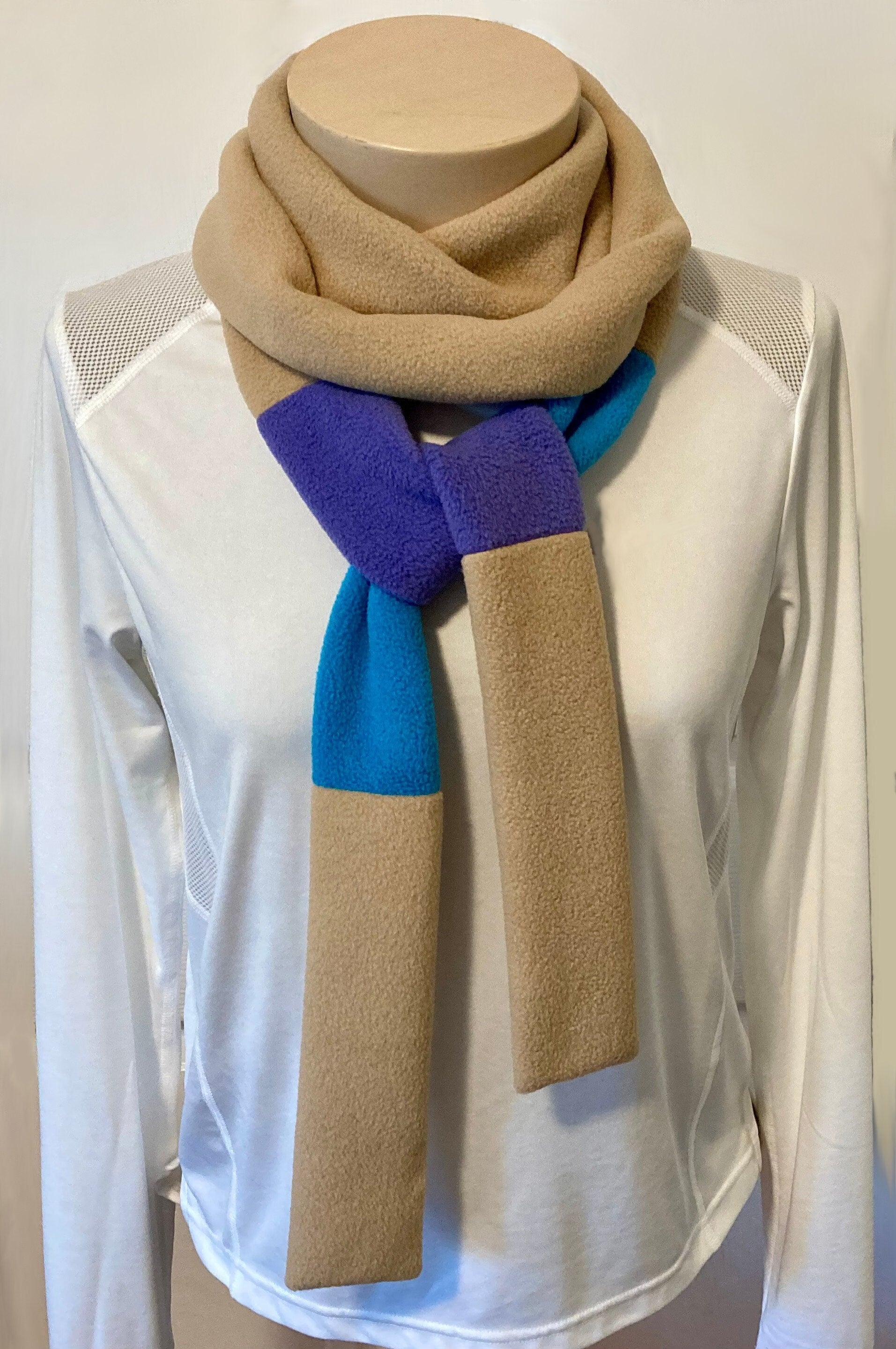 Skinny Fleece Scarf with Beige, Turquoise and Purple Design
