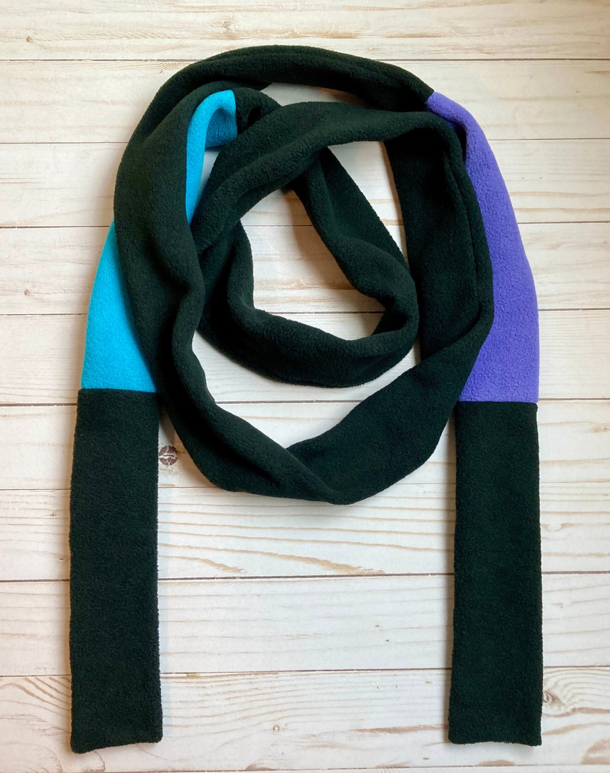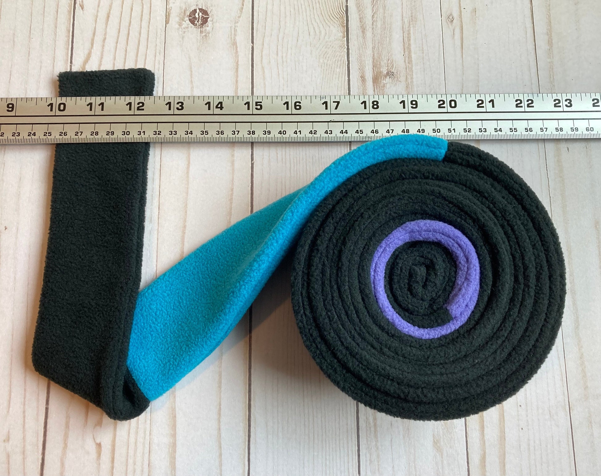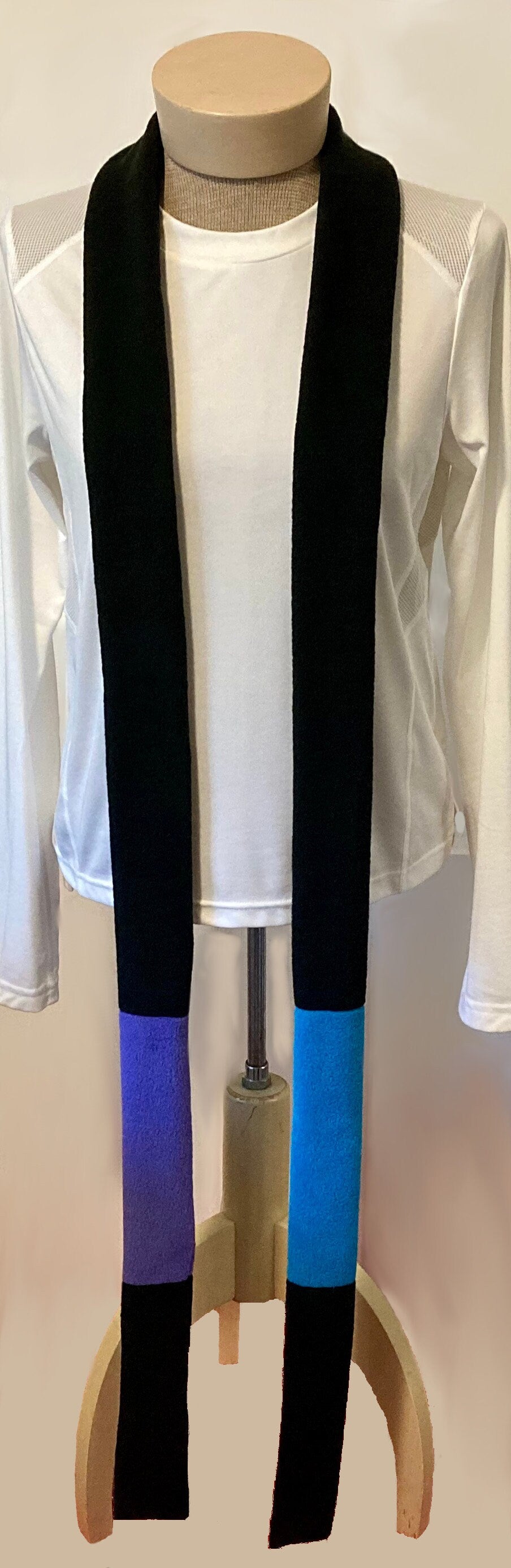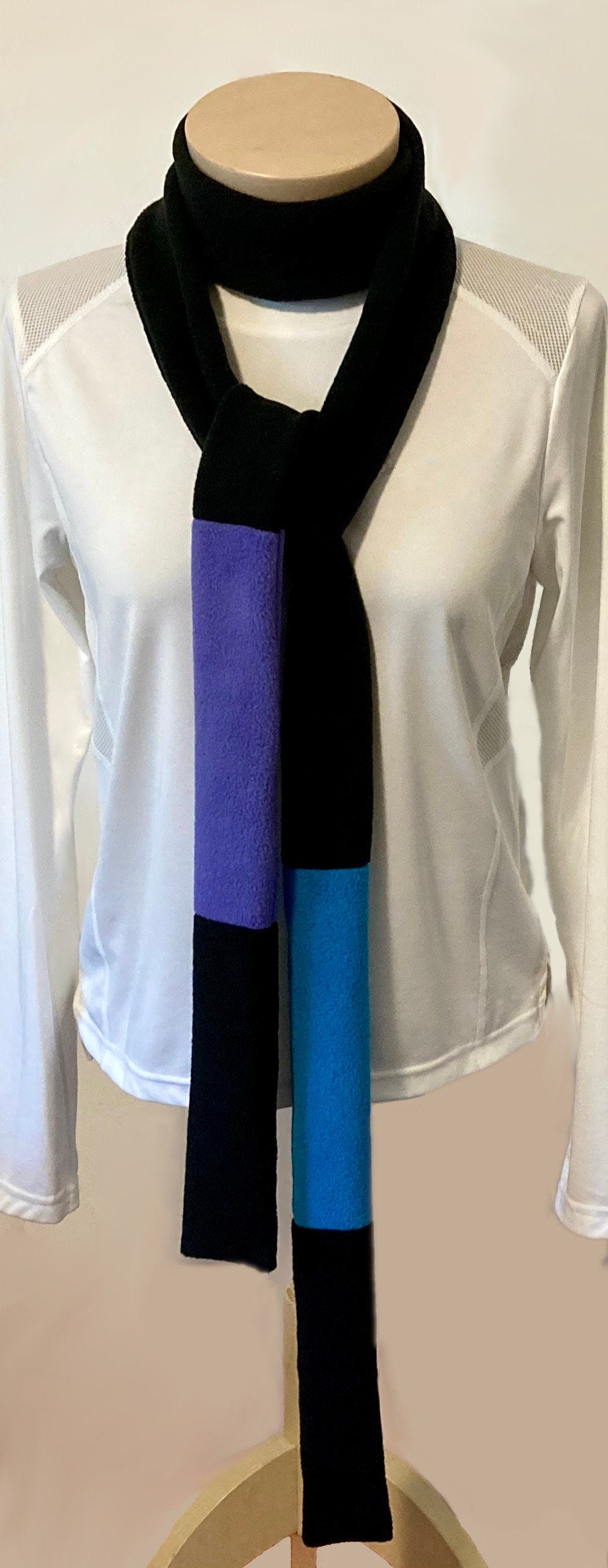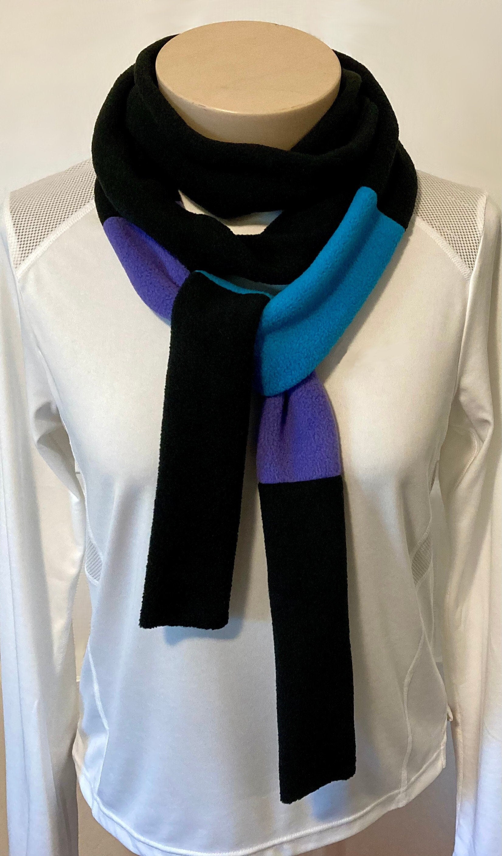 Skinny Fleece Scarf with Black, Turquoise and Purple Design