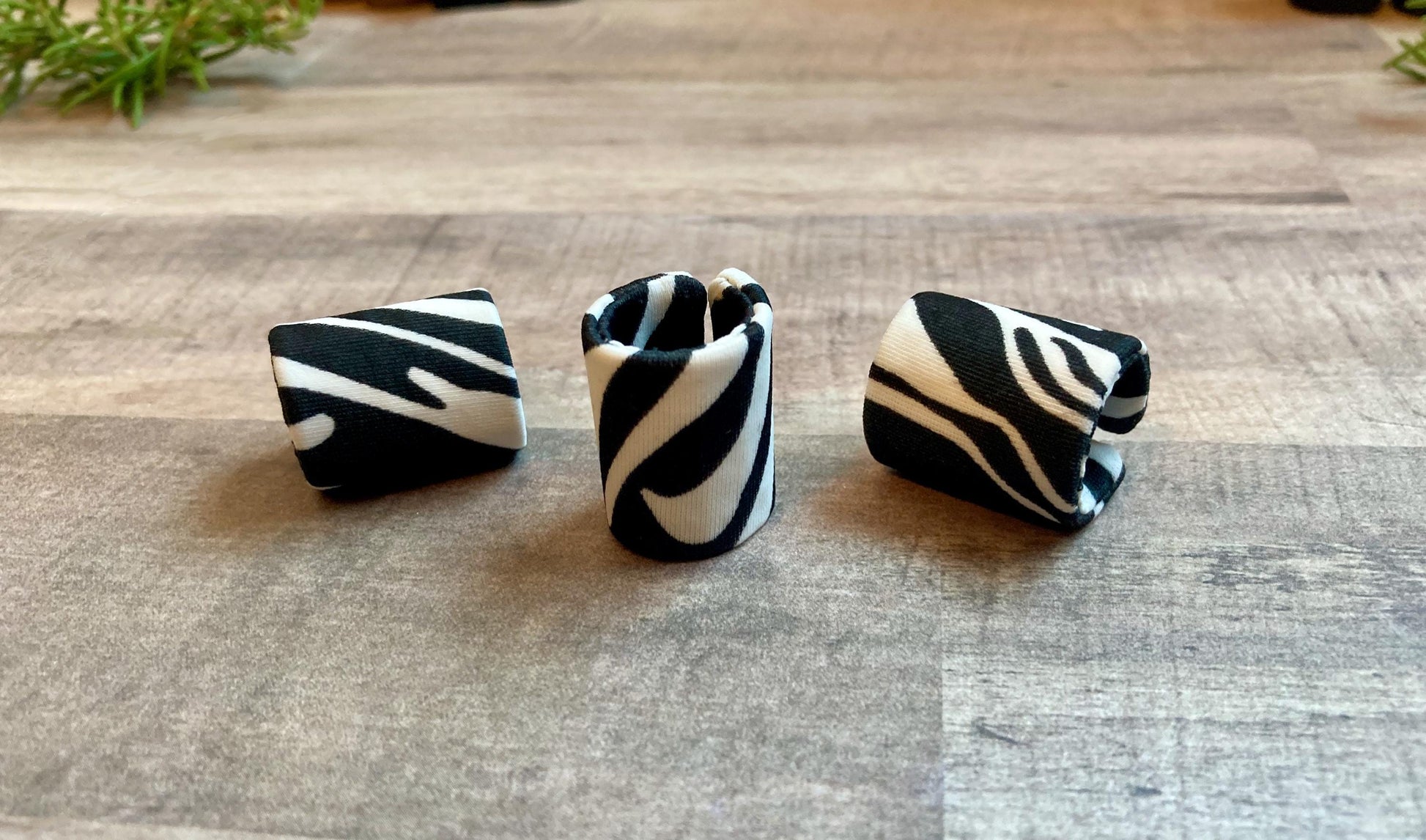 Elevate your everyday hairstyle with these Zebra Print, Fabric Covered Hair Cuffs—Large and Adjustable—a fashionable way to decorate or gently hold hair. Perfect for dreadlocks, braids, twists, sisterlocks, afros, updos, natural, and protective styles.